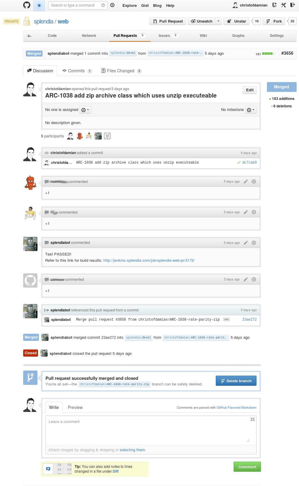 The second tool is a simple script which was written by one of our developers and it was called PullRequester. It runs as a cron job and checks whether the pull requests satisfy the +1 and successful test rules. If all is OK it automatically merges it.I have reimplemented this script to make it possible to publish it. You can find it under the name plus-pull on github. I have added some more features to make it also useful for open source projects.